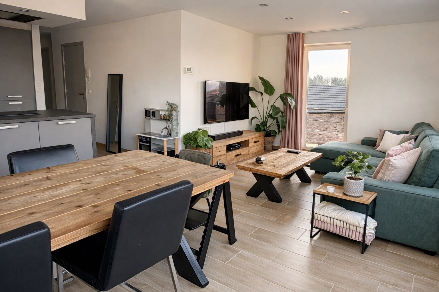 Het appartement is voorzien van alle comfort en beschikt over verwarming op warmtepomp, zonnepanelen en airco.