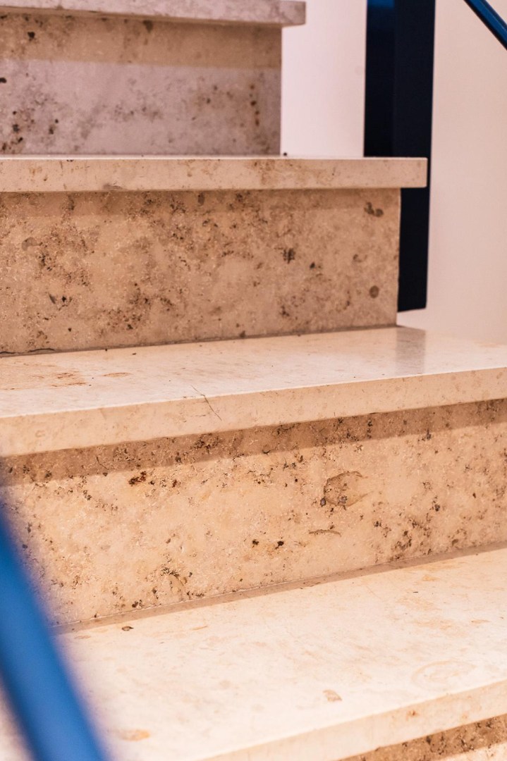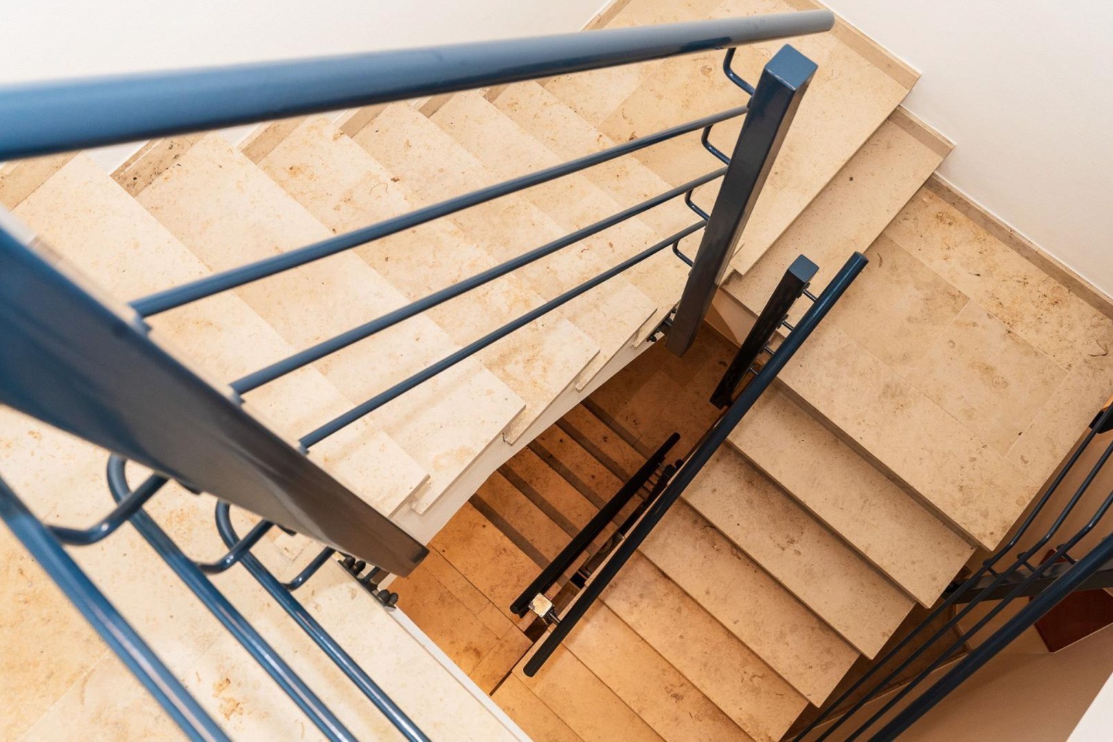 - Een ruime werkruimte met open traphal en een zijdeur met directe toegang tot de parking.