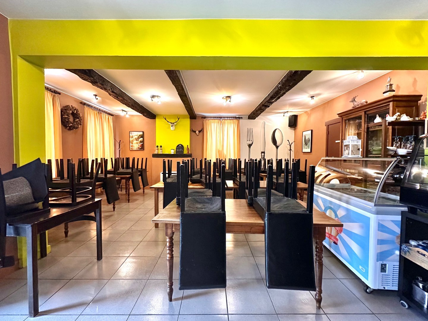 - Ruim eetcafé met gezellige toog en open zaal: ideaal voor horecagebruik.