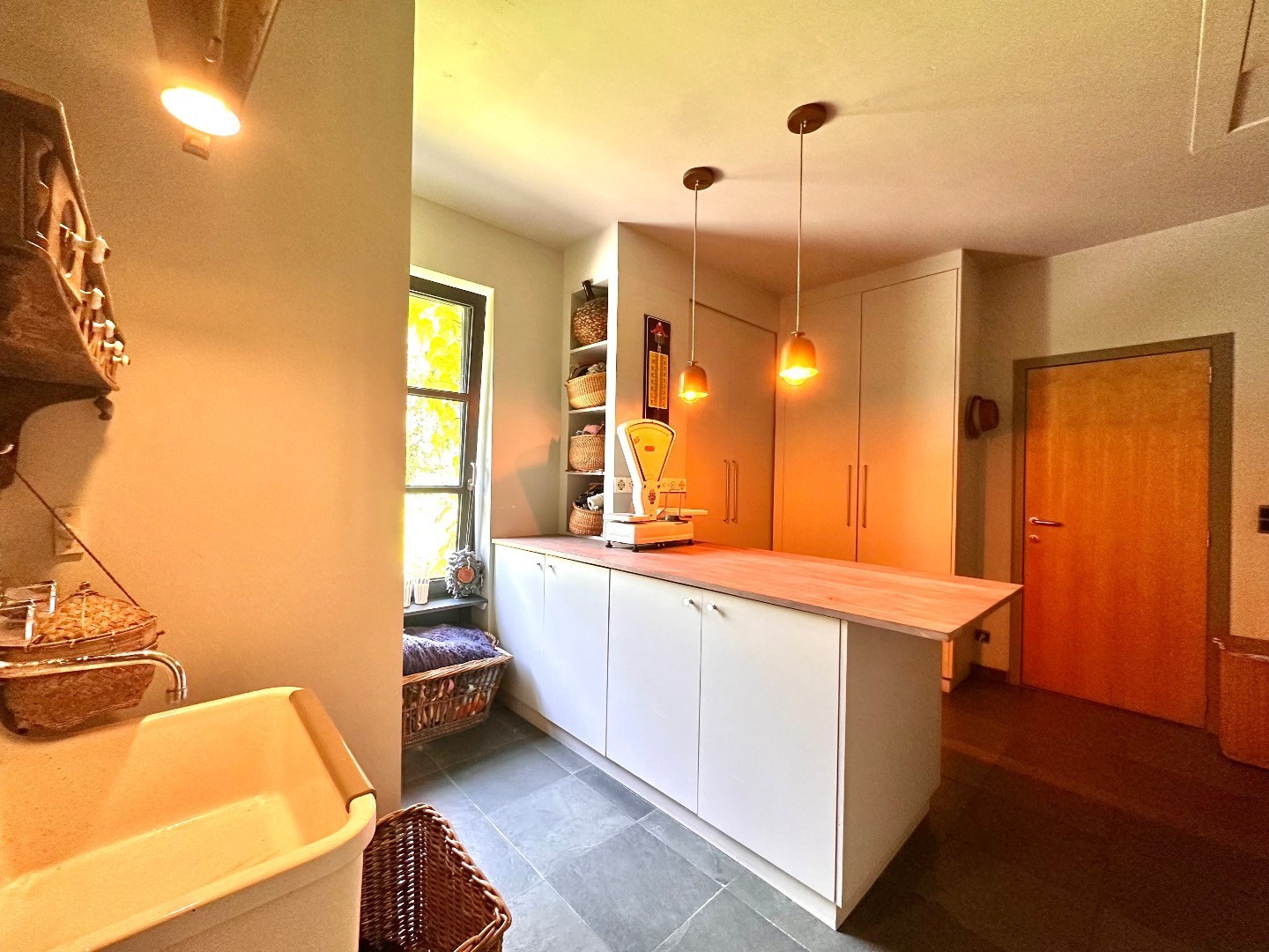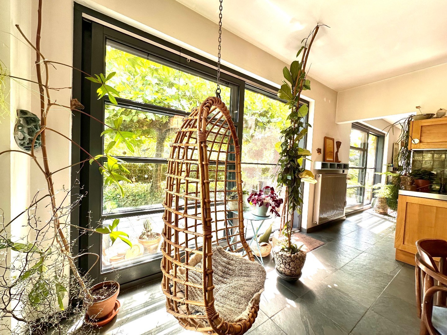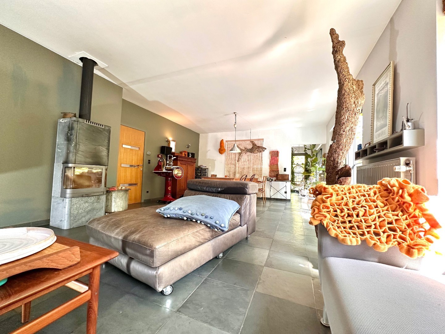 Bij het betreden van de woning kom je terecht in een ruime inkomhal die meteen het hoge afwerkingsniveau van het pand verraadt. De lichtrijke woonkamer biedt een prachtig zicht én directe toegang tot de tuin – een oase van rust waar je volledig tot ontspanning komt na een drukke werkdag.