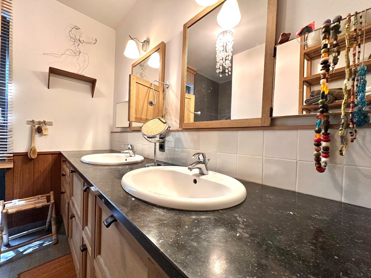 Aan de andere kant van de woning vind je de nachthal met drie volwaardige slaapkamers, een moderne badkamer voorzien van een dubbele lavabo en inloopdouche – perfect afgestemd op het comfort van een gezin.