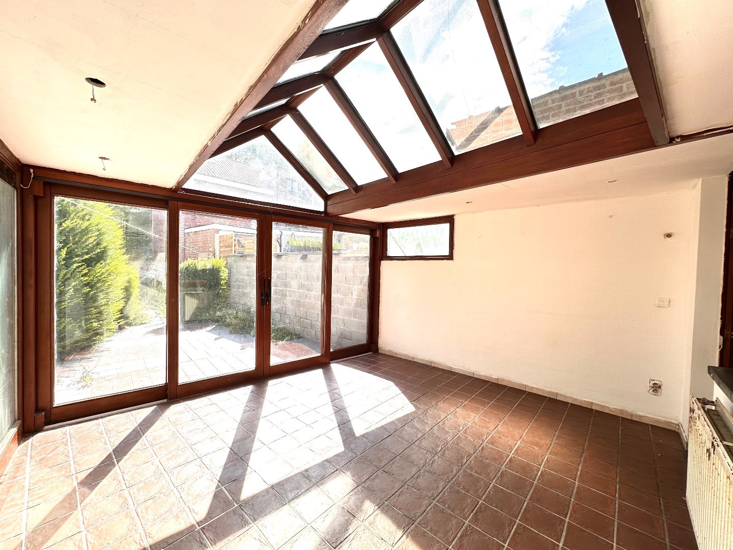 - Gelijkvloers: ruime inkomhal, lichtrijke leefruimte, keuken, berging, toilet met douche, gezellige veranda, terras en een stadstuin waar u heerlijk kunt ontspannen in de zon.