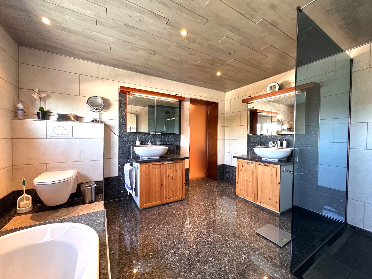 Op het gelijkvloers bevindt zich tevens een eerste badkamer, uitgerust met een douche. Deze ruimte fungeert ook als wasplaats, wat zorgt voor extra functionaliteit.