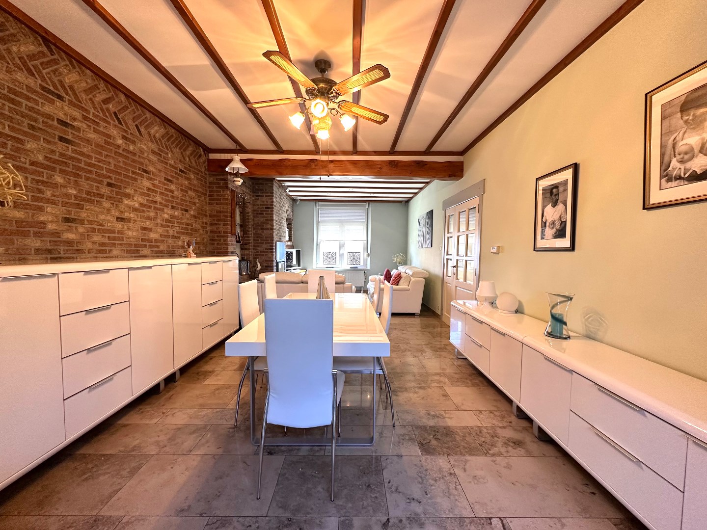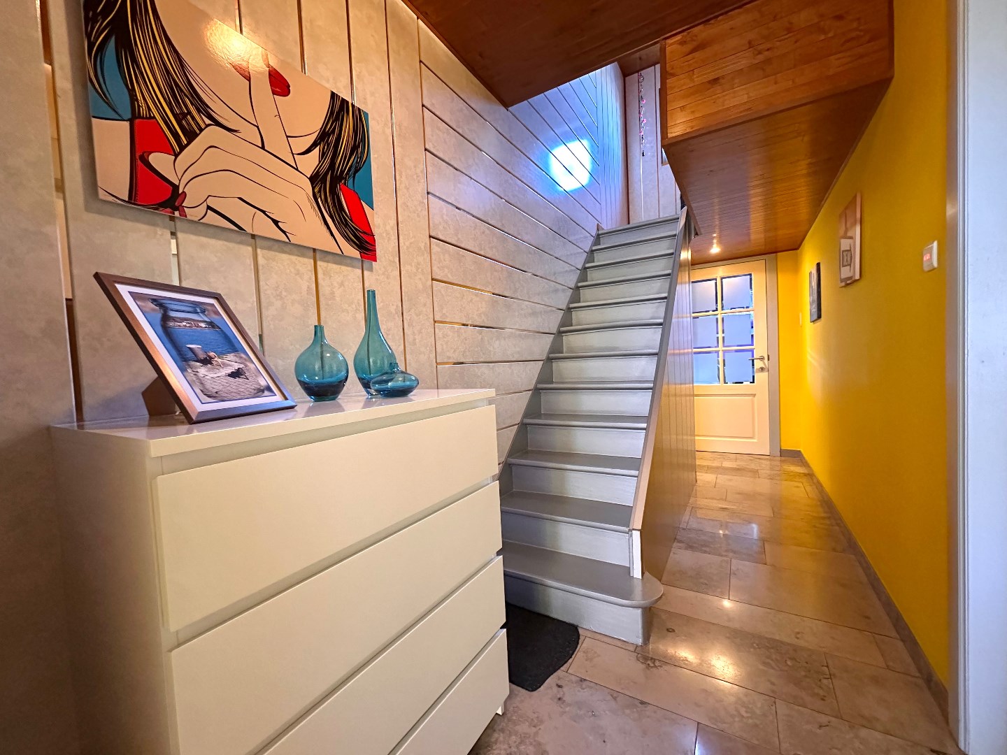 Bij het betreden van de woning komt u in een ruime inkomhal die toegang biedt tot de verschillende leefruimtes. De inkomhal creëert meteen een warme eerste indruk.