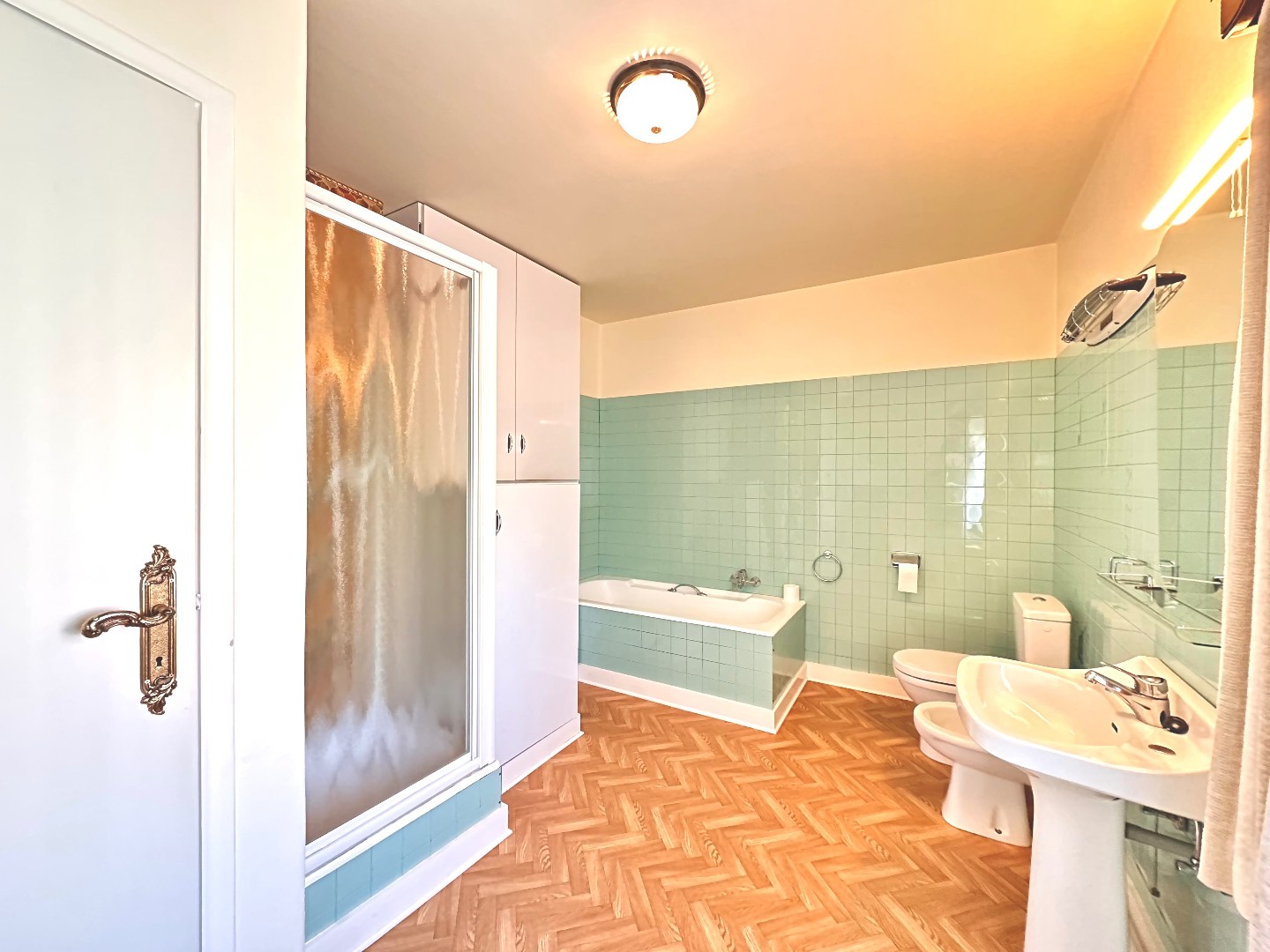 - Badkamer voorzien van douche, ligbad, wastafel, toilet en bidet