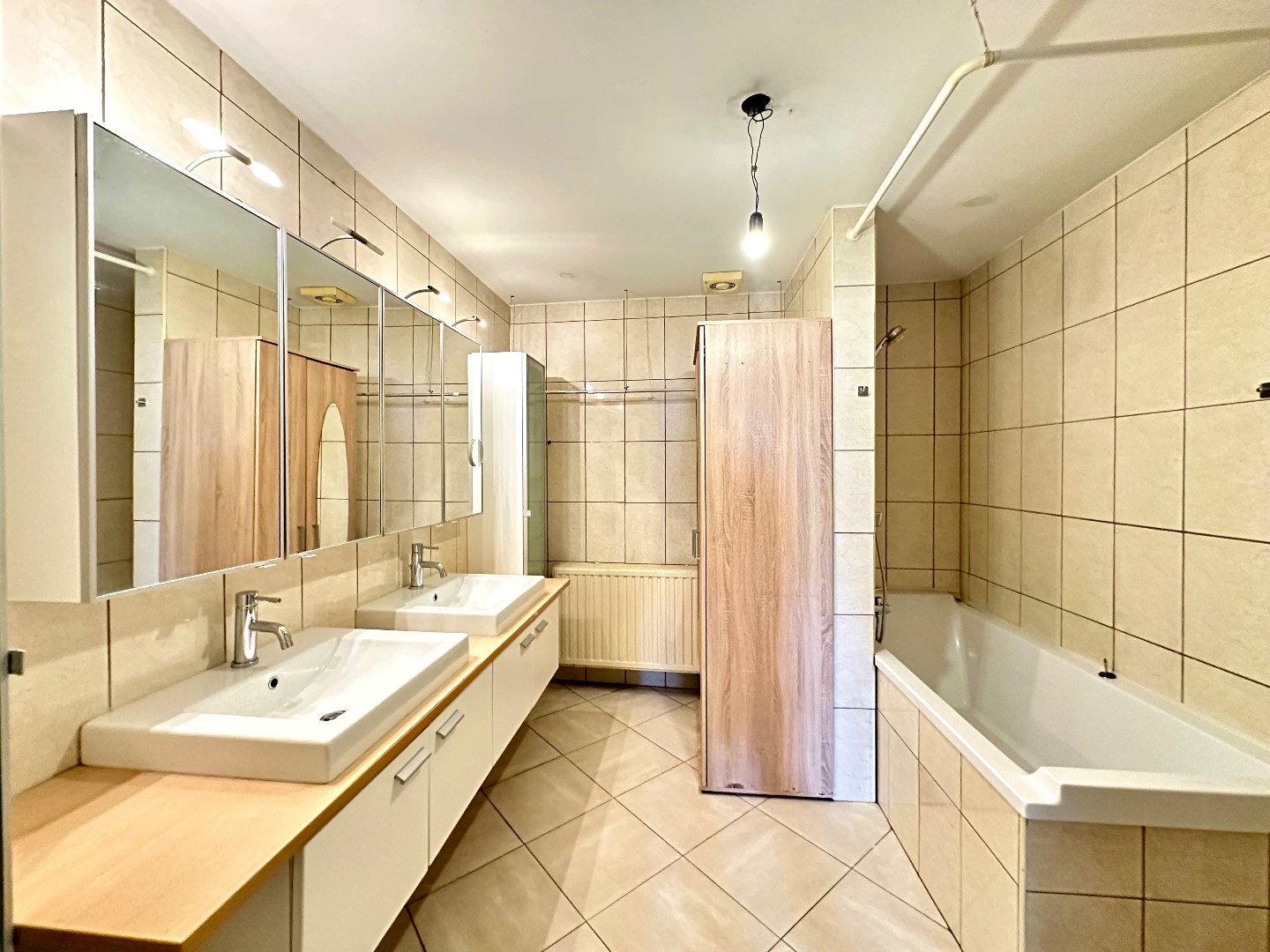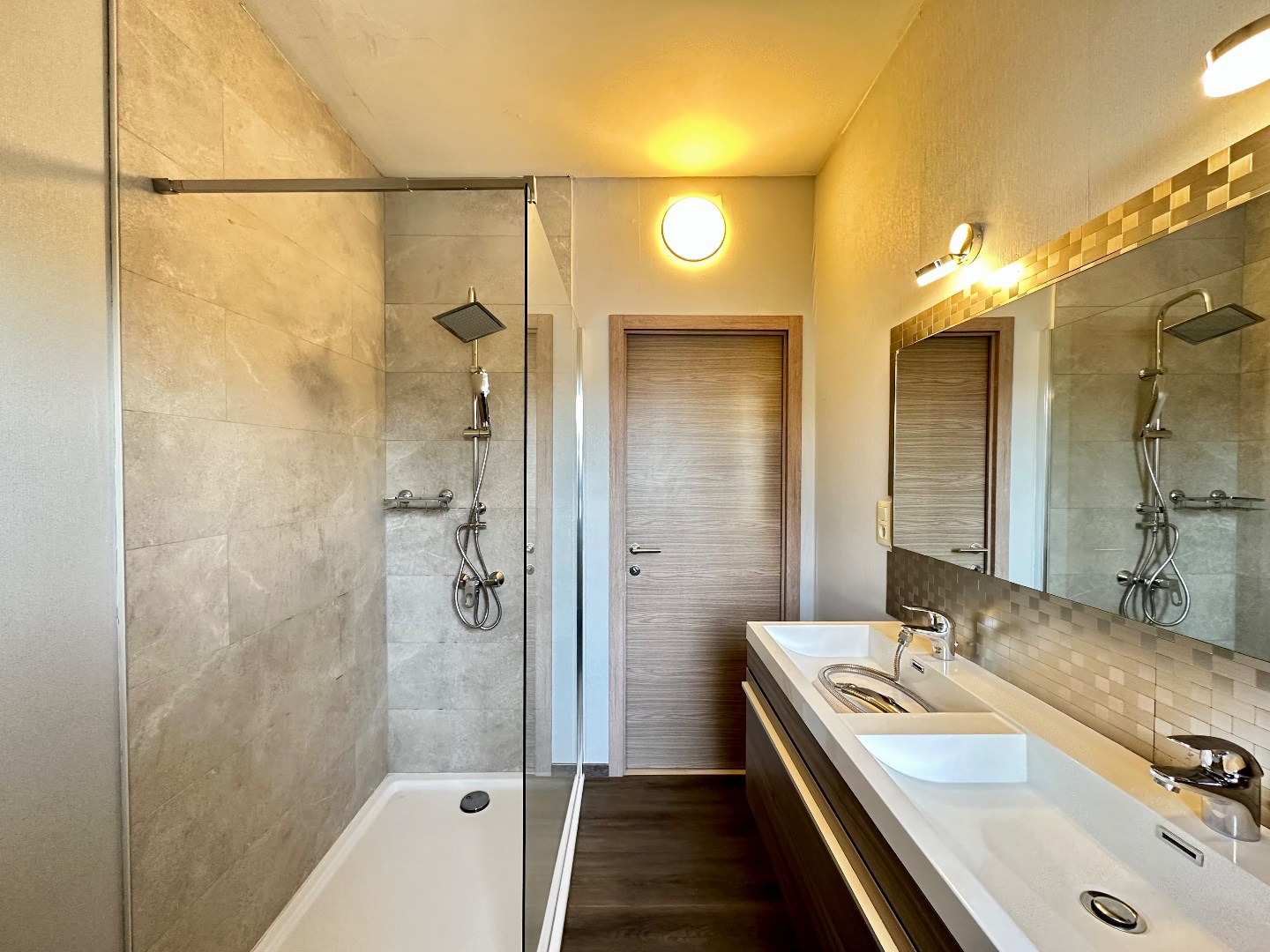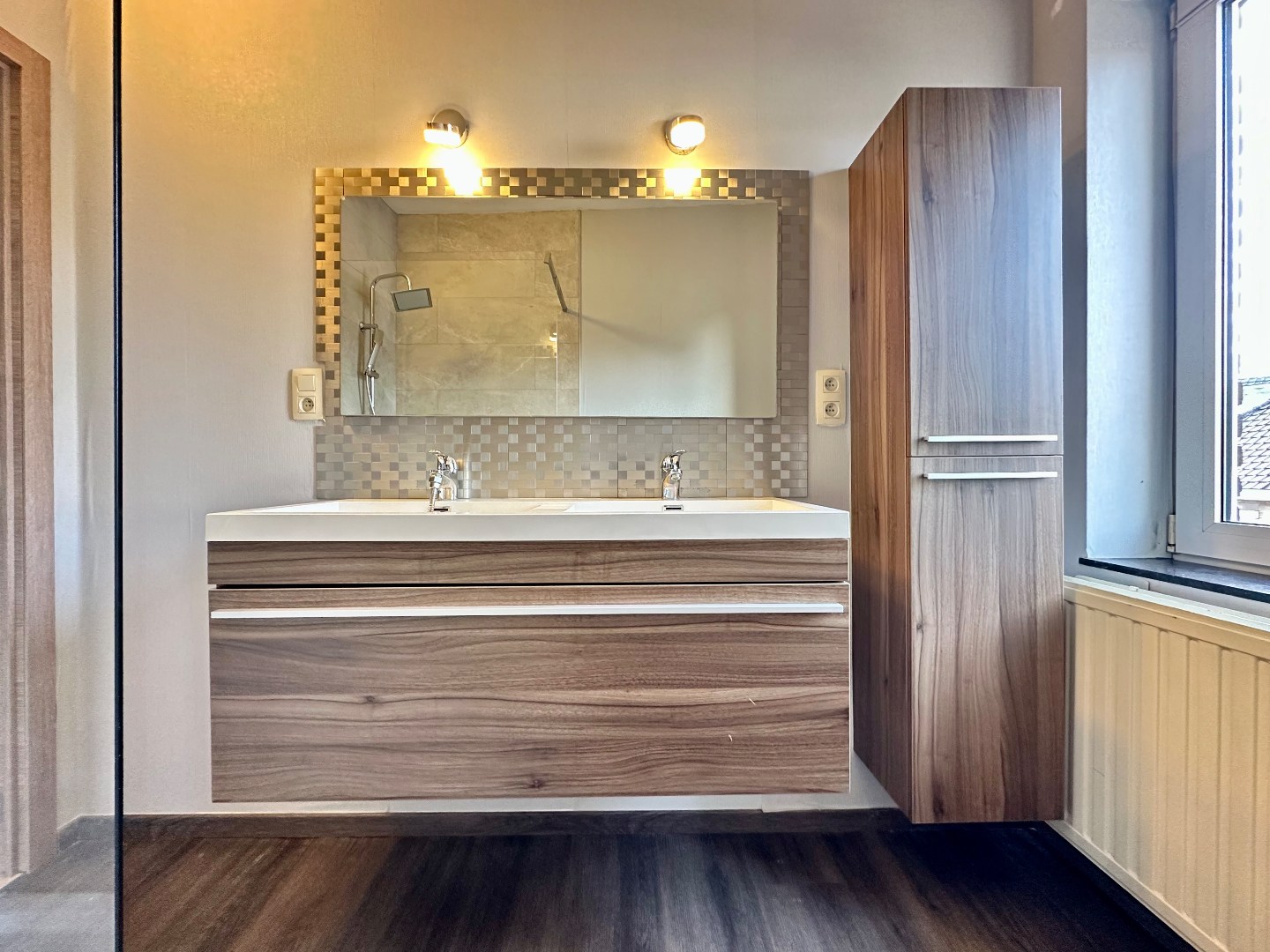 - Badkamer uitgerust met dubbele lavabo, bad en toilet