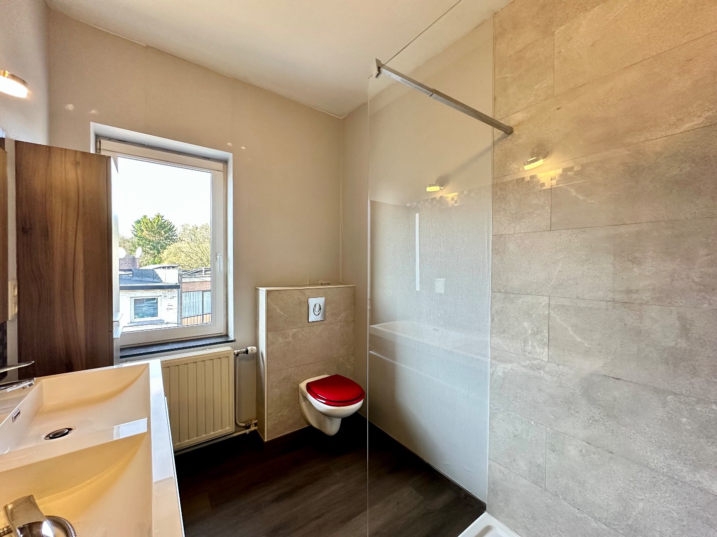 Tweede badkamer met dubbele lavabo, toilet en inloopdouche