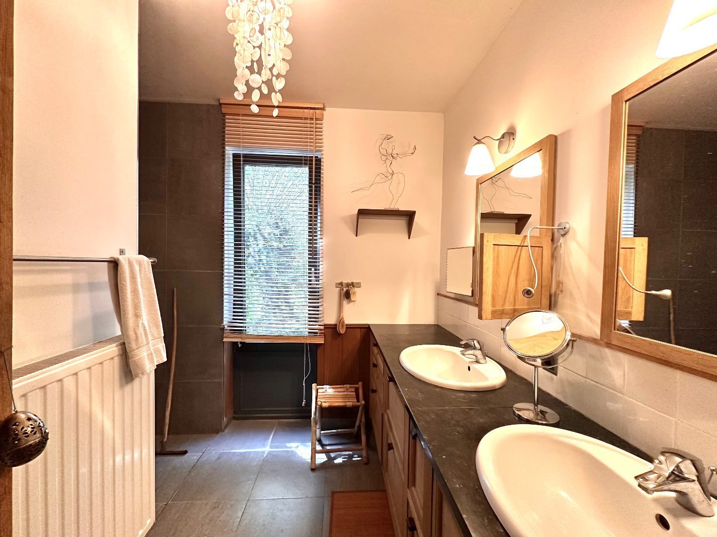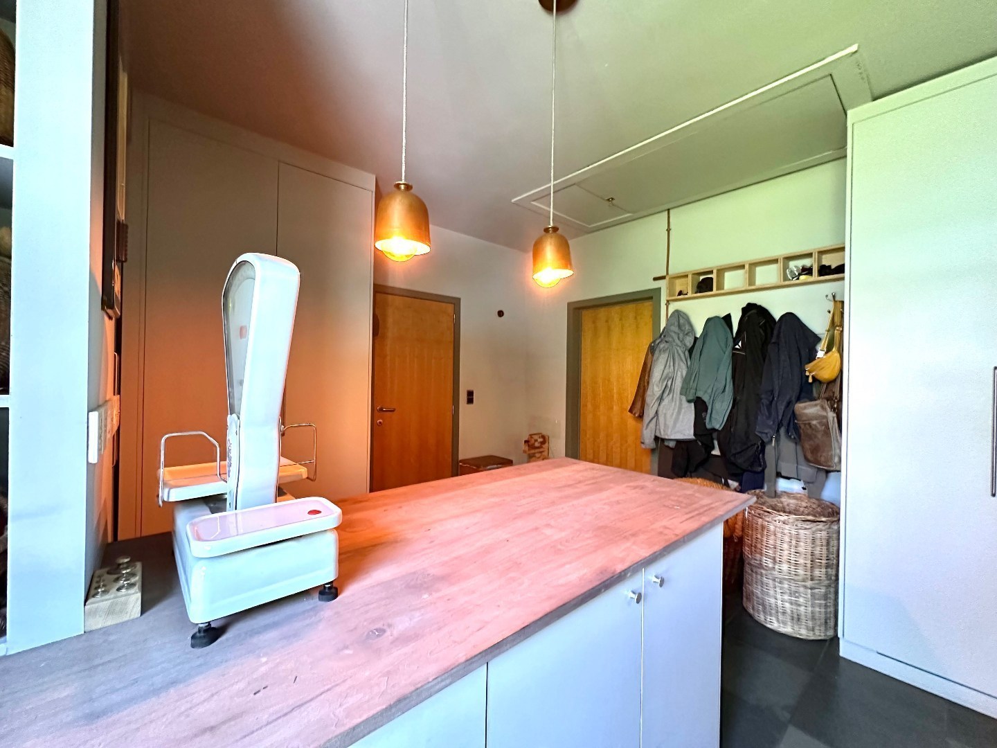 Bij het betreden van de woning kom je terecht in een ruime inkomhal die meteen het hoge afwerkingsniveau van het pand verraadt. De lichtrijke woonkamer biedt een prachtig zicht én directe toegang tot de tuin – een oase van rust waar je volledig tot ontspanning komt na een drukke werkdag.