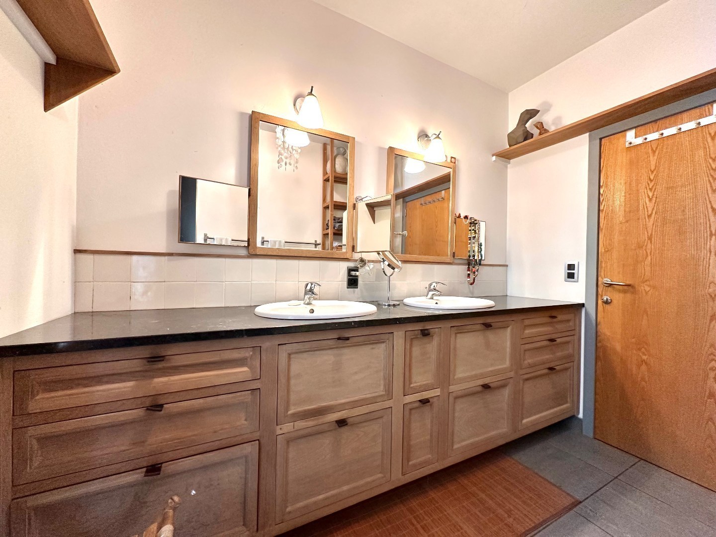 Aan de andere kant van de woning vind je de nachthal met drie volwaardige slaapkamers, een moderne badkamer voorzien van een dubbele lavabo en inloopdouche – perfect afgestemd op het comfort van een gezin.