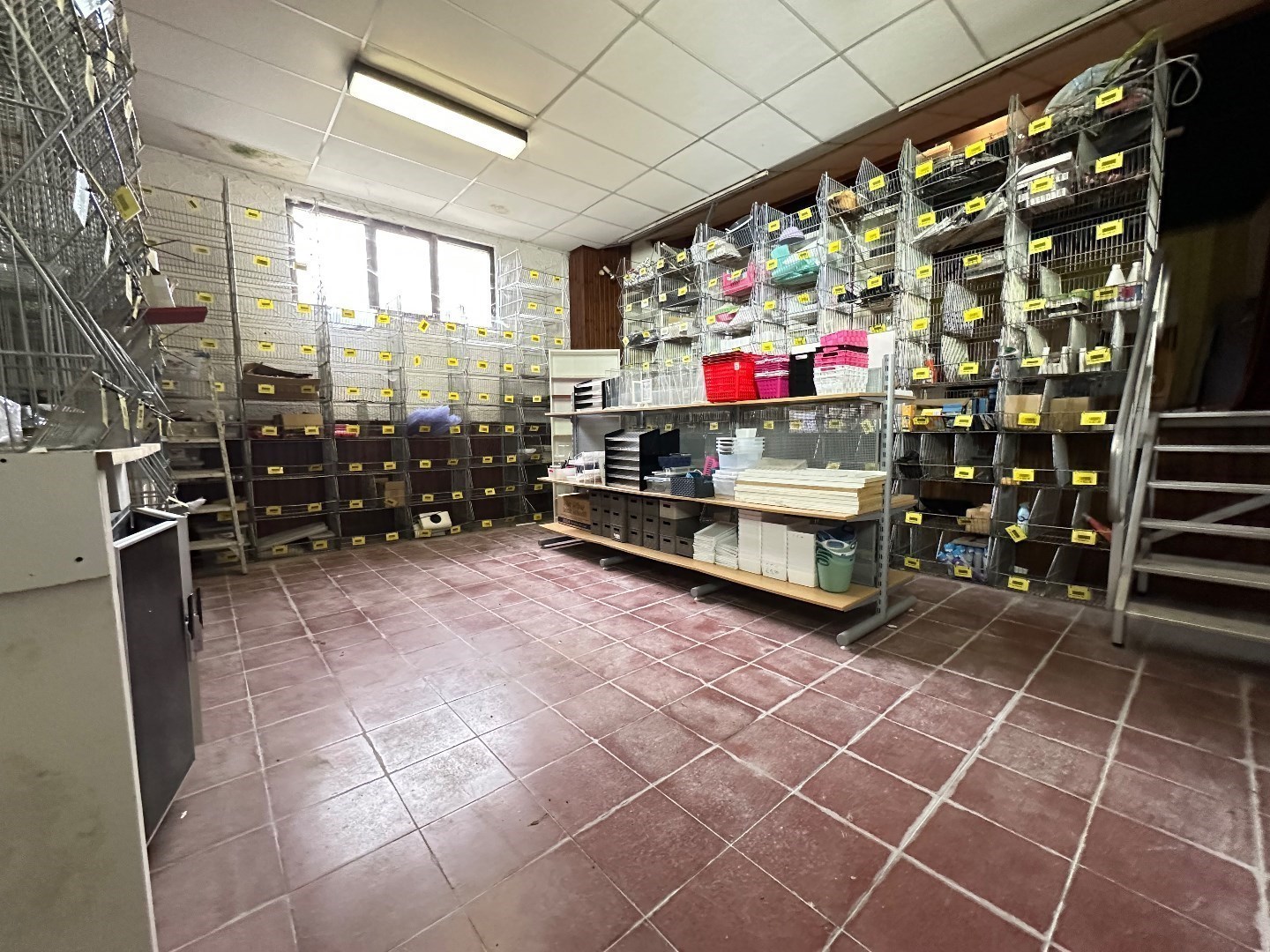 - Oude feestzaal met podium die ook kan dienen als opslagruimte