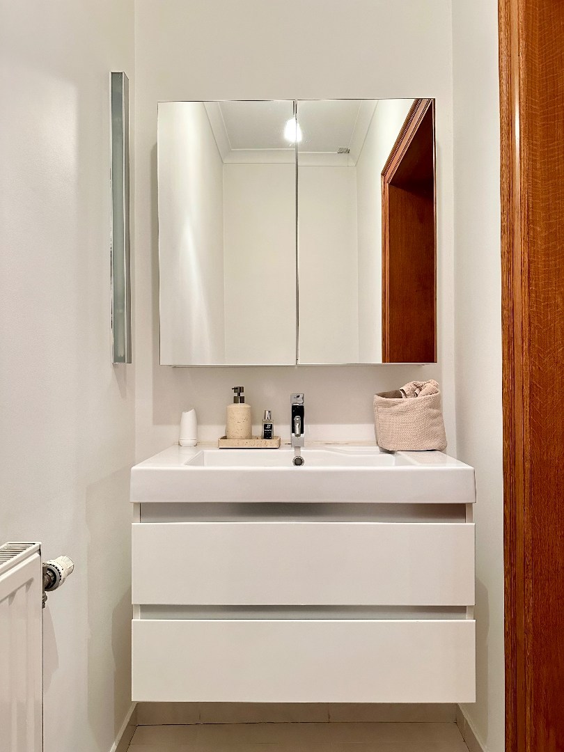 Op de eerste verdieping bevinden zich twee ruime slaapkamers, beide voorzien van airconditioning, evenals een eerste badkamer met inloopdouche, dubbele lavabo en toilet.